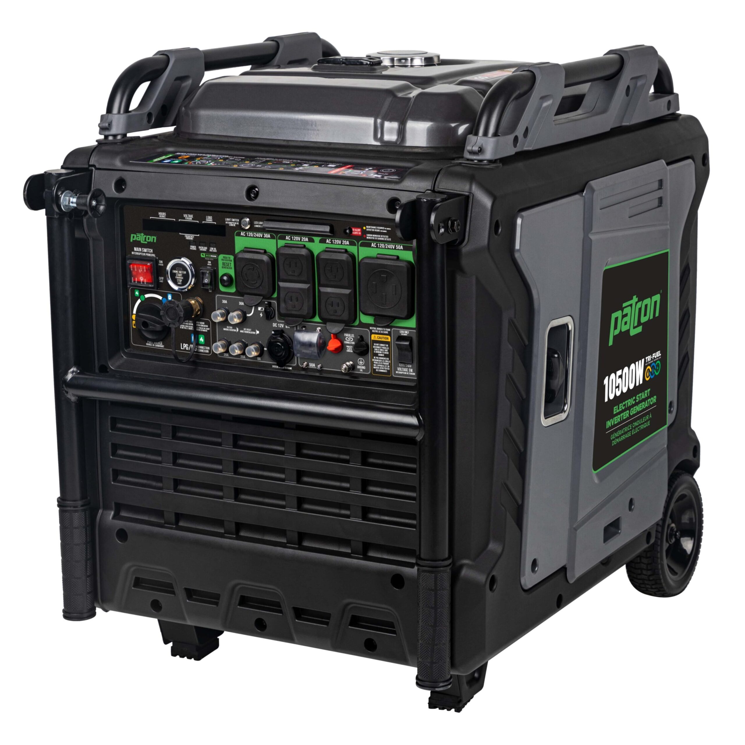 Génératrice inverter tri-carburant Patron/BE GI-10500iT, 10 500 W de puissance fiable, silencieuse et polyvalente pour maison, chantiers et urgences.