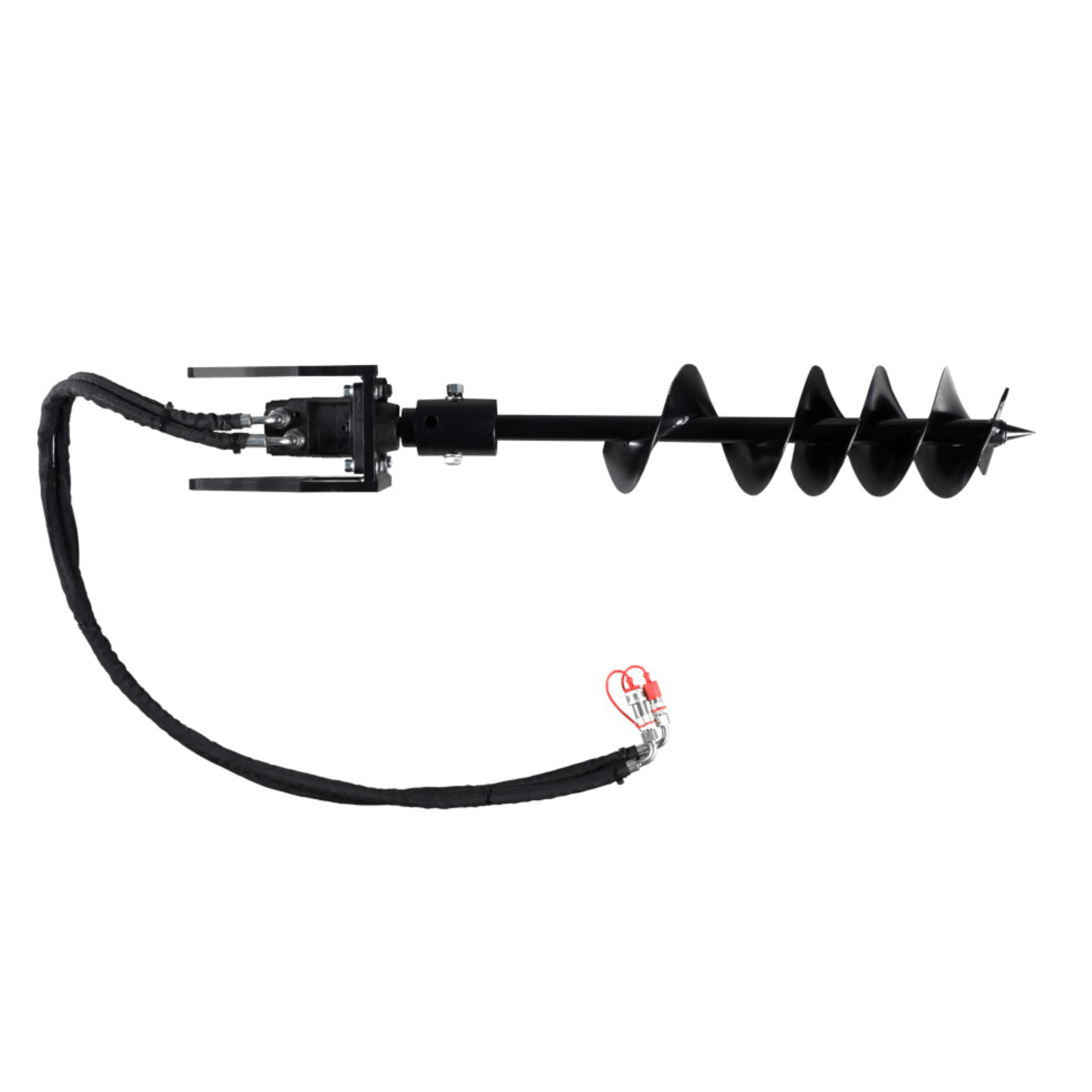 Perce-trous de poteaux 8’’ avec tarière DUAPH-AUGER-8, un accessoire conçu pour faciliter le creusement de trous dans le sol en préparation de l’installation de poteaux, clôtures ou autres structures. Compatible avec votre chargeur sur chenilles ou autre machine adaptée, cet outil vous aide à percer rapidement des trous de 8 pouces de diamètre sans effort manuel intensif.